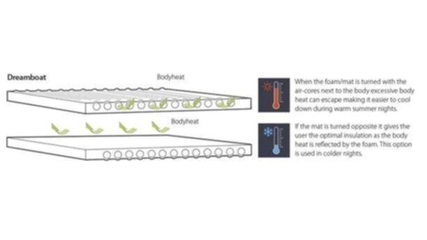 The Outwell Dreamboat Double 7.5cm is a self inflating mat that offers superb comfort and quality. It is supremely comfortable, durable and reliable, all thanks to the resources used. Additionally, the new valve system ensures it will not inflate whilst packing down – which means it can be folded away much simpler and easier than rival mats. A truly luxurious experience, full of Outwell technical features, guaranteed to give you a good nights’ sleep. It is designed to be used either way up – one gives more insulation from the ground for cooler nights, whilst the other side offers more breathability for warmer evenings.