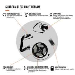 The Vango Sunbeam 4 Metre Flexi Light system is the perfect addition to any family tent or awning, offering plenty of bright lighting from a flexible LED system. It allows for more versatility on where to place the light, as it can be placed up the wall, or along the roof panel, or a mixture of both. The LEDs will never need replacing, which is a massive advantage when compared to regular camping lights.