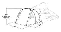 The Westfield Orion 300 Performance Air DriveAway Awning, is the perfect small addition to your campervan that will make life on your holiday much more comfortable by providing versatile extra space. With multiple tunnel options it can fit vehicles with a height between 180 to 270cm tall, so if you decide to change your vehicle you have the option to buy a new tunnel that will allow the awning to fit to it without having to replace the entire thing. It features a luxury HydroTech Cotton Touch flysheet, which is a premium, all weather fabric that will last for many years, the high performance coating also gives the Orion an extremely high weathrproof rating to protect you from the elements. The side panels of the Orion are removable, and offer an optional extra annex, perfect for use as a bedroom or a bit of extra storage space.